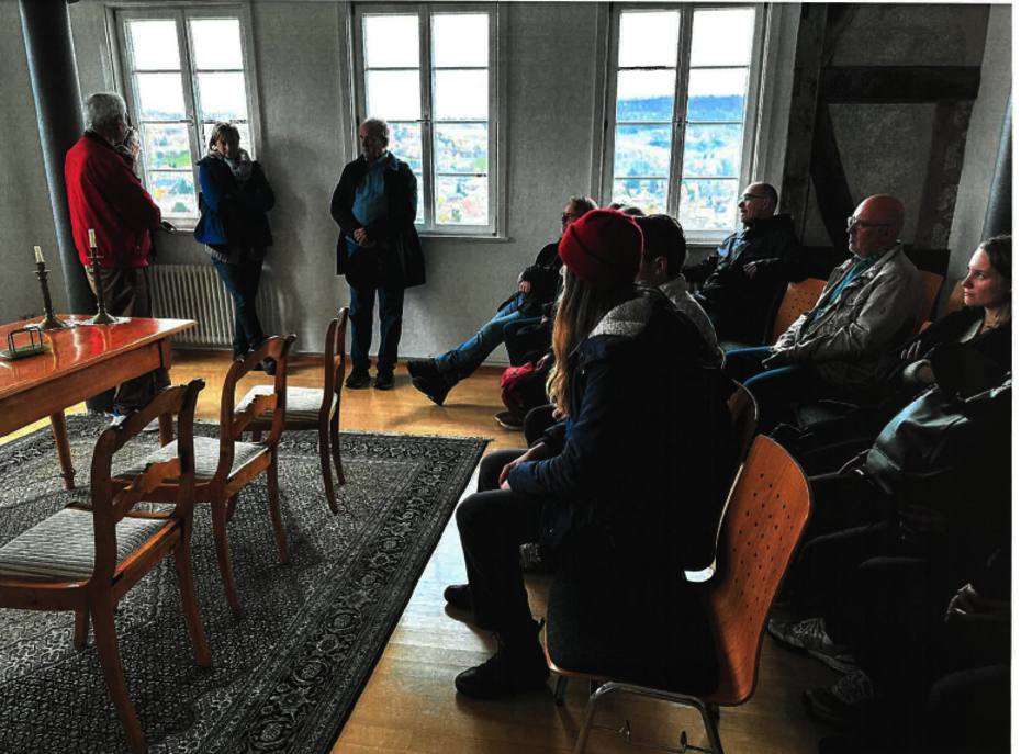 Bereits am Donnerstag, 9. Oktober 2025 konnte Willi Kemmler etwa 40 ehrenamtliche Mitarbeiter des Gustav-Schwab-Stifts im Schloss willkommen heißen. Mit einem Vortrag über die Zeiten Gustav Schwabs und dessen Wirken als Pfarrer in Gomaringen führte Willi Kemmler durch die Räumlichkeiten. In der Amtszeit Schwabs wurde die evangelische Marienkirche umgebaut.