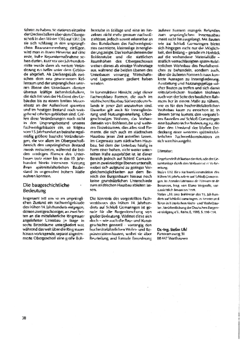 Dr. Stefan Uhl, historischer Bauforscher für Schlösser und Burgen des 16. Jahrhunderts, hat in den Jahren 1995 und 1999 im Auftrag der Landesregierung Forschungsarbeiten zum Gomaringer Schloss erstellt.